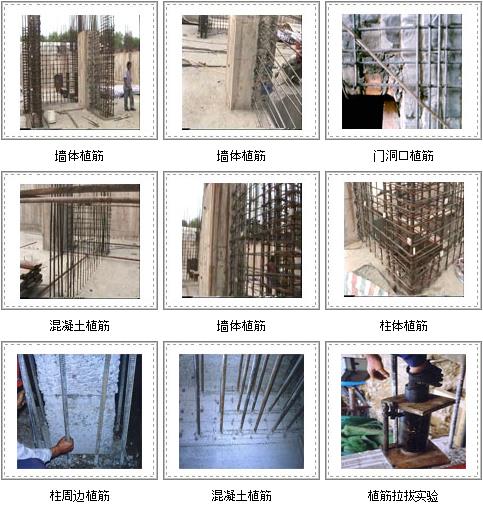 植筋前孔洞大水、深度檢查,植筋后拉拔實驗。